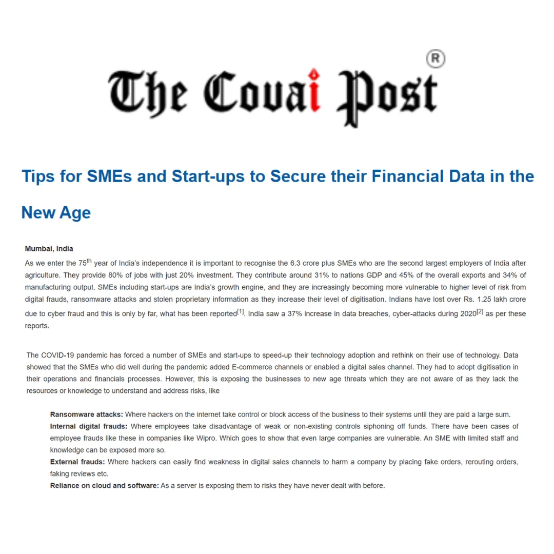 The article focused on financial data protection for SMEs and startups, a topic founders care about but rarely prioritise until it is too late.